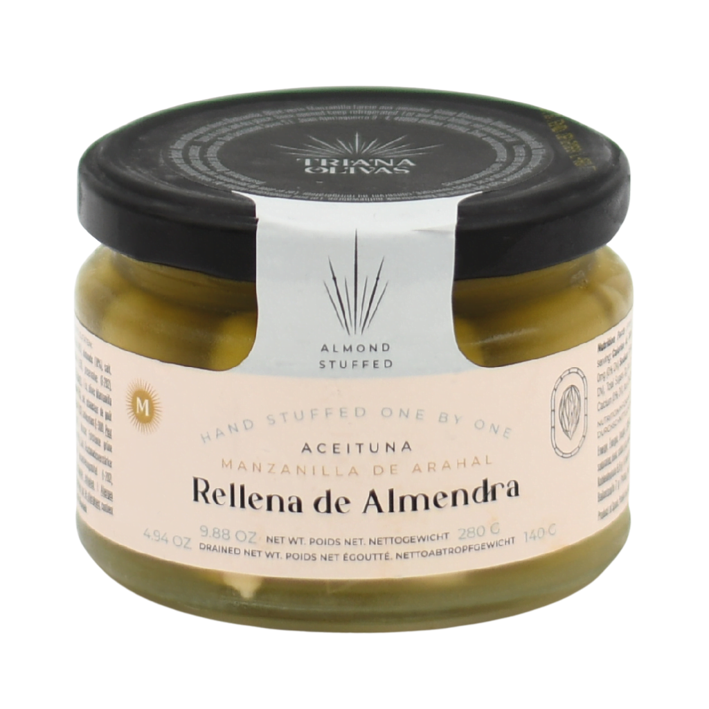 Oliwki Manzanilla to klasyka hiszpańskich tapas, a te w wyjątkowej wersji nadziewane są chrupiącymi migdałami. Delikatne i aromatyczne, zyskują na smaku dzięki wyjątkowemu nadzieniu.
